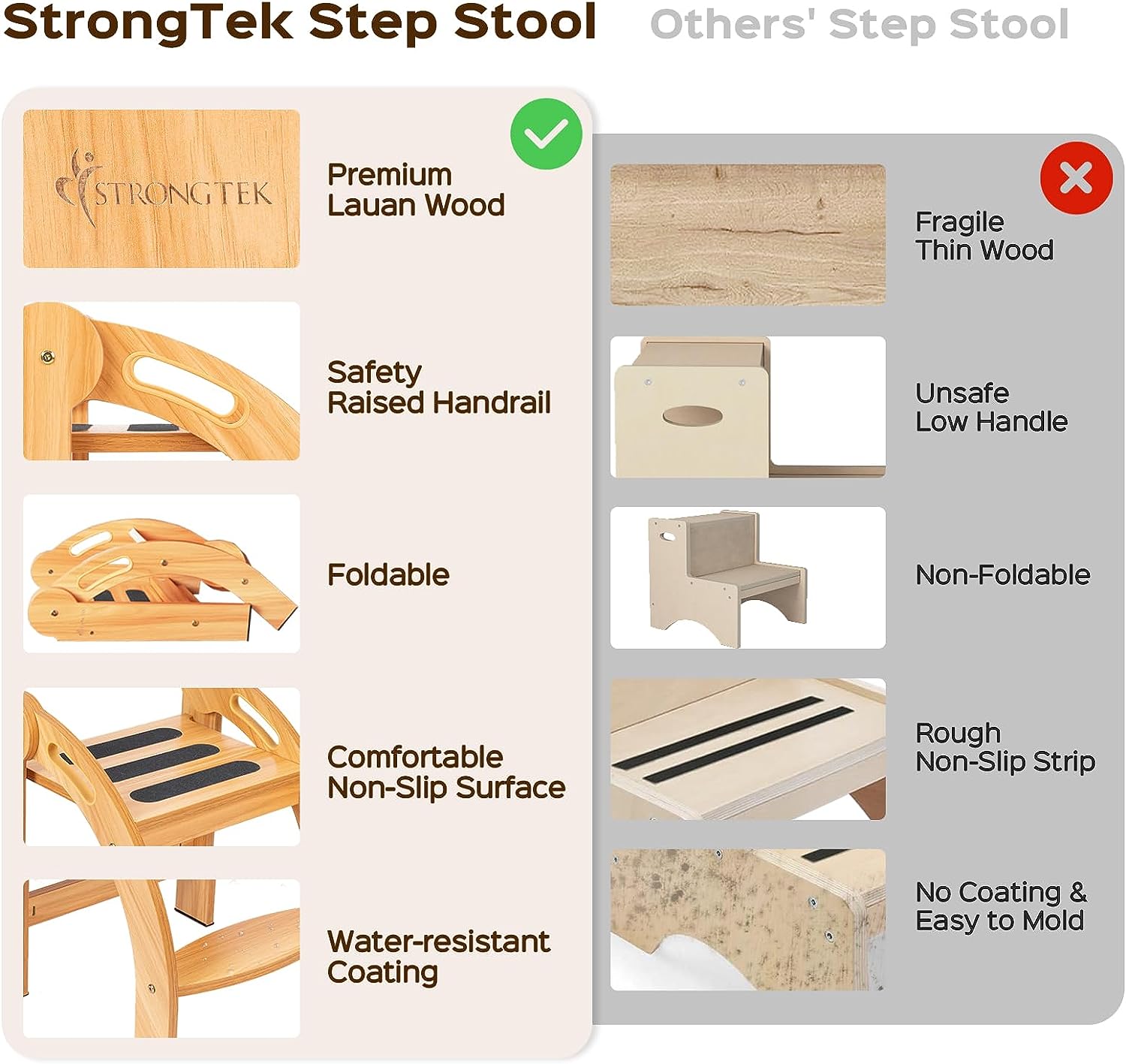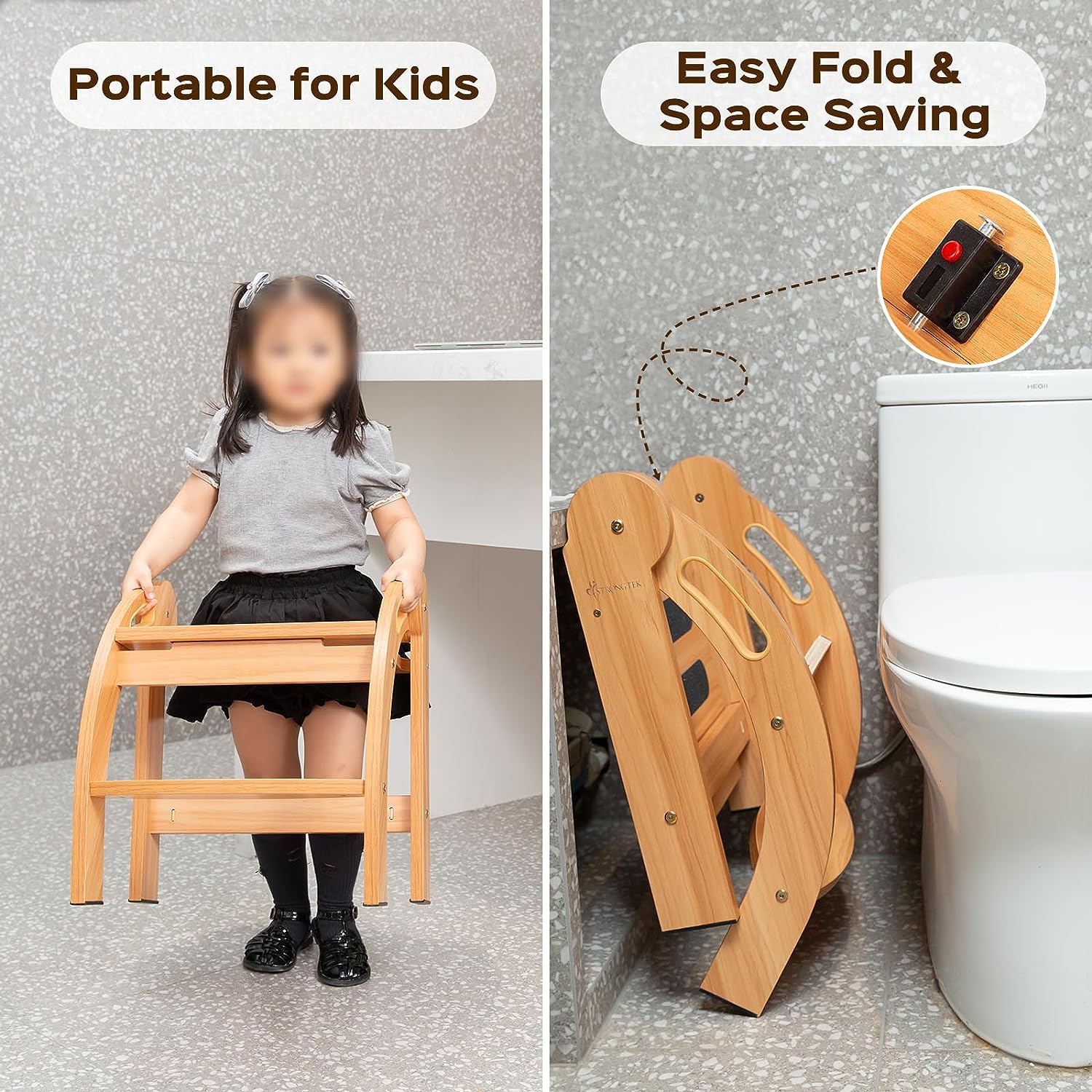 Foldable & Space-Saving: The StrongTek toddler stepping stool is designed to be easily folded and stored when not in use, facilitating efficient space usage and organization in your household.