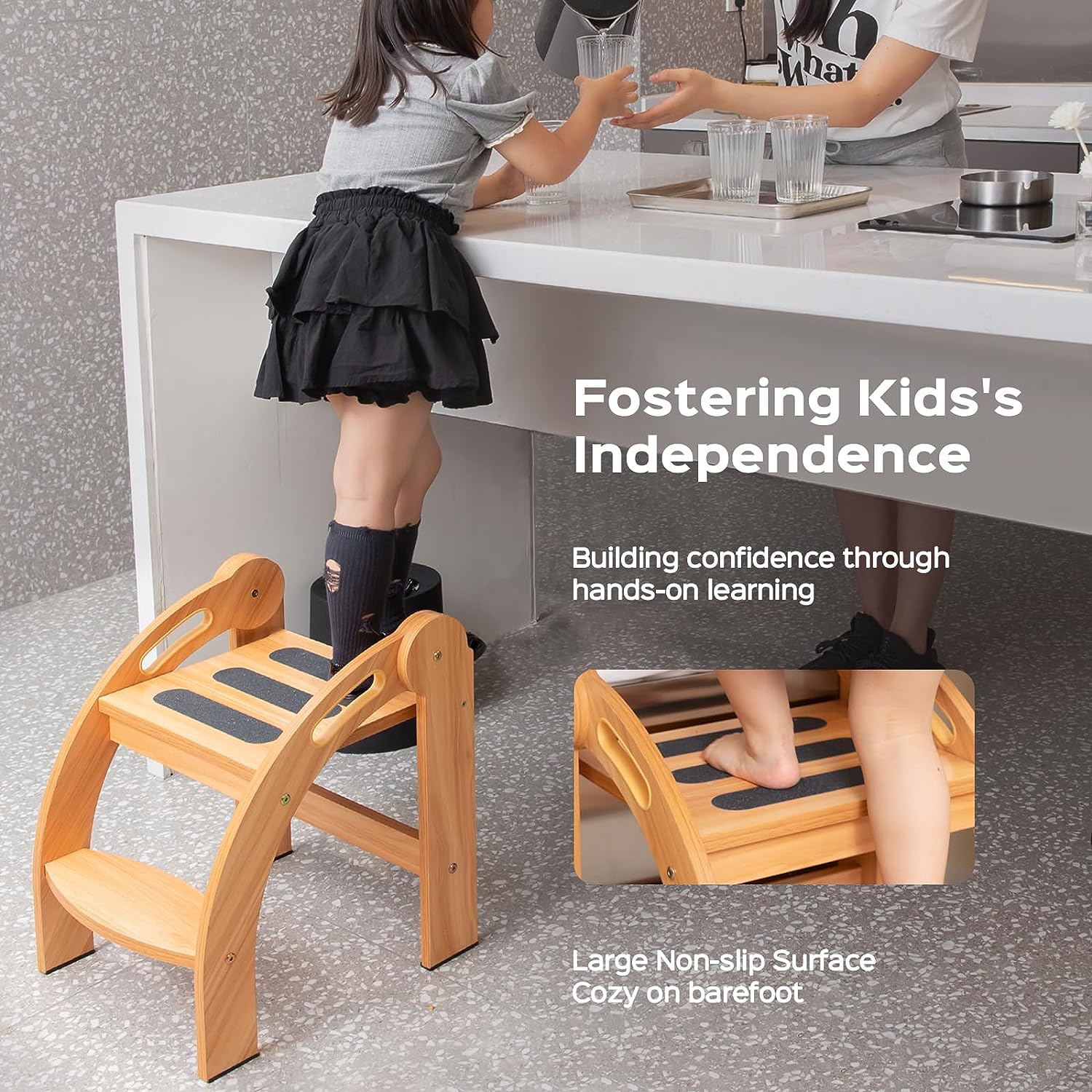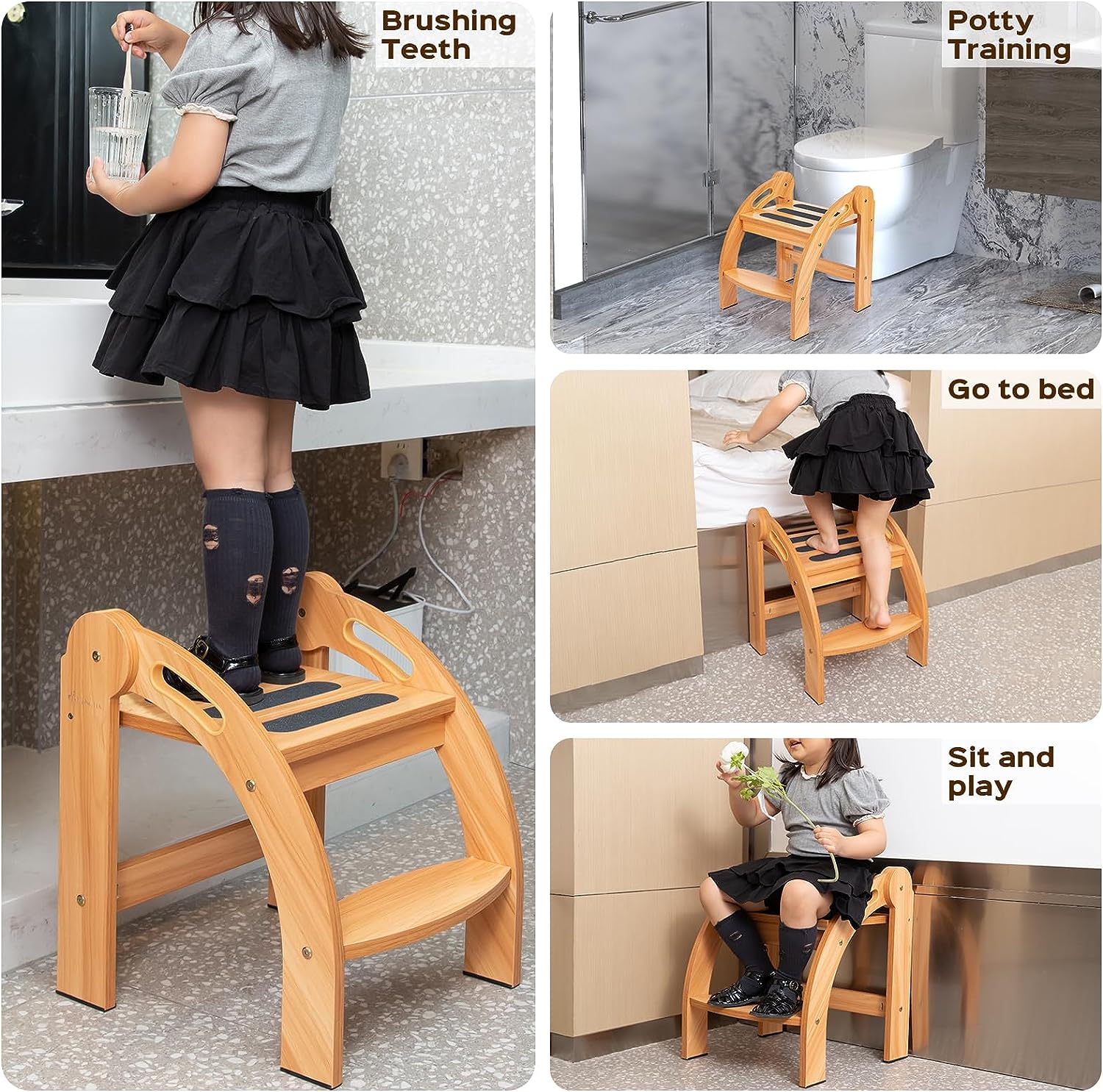 Versatile & User-Friendly Design: The StrongTek toddler stool offers a two-step design, with steps at 15 cm and 35 cm heights, enabling kids to perform tasks independently in the kitchen, bedroom, or bathroom.