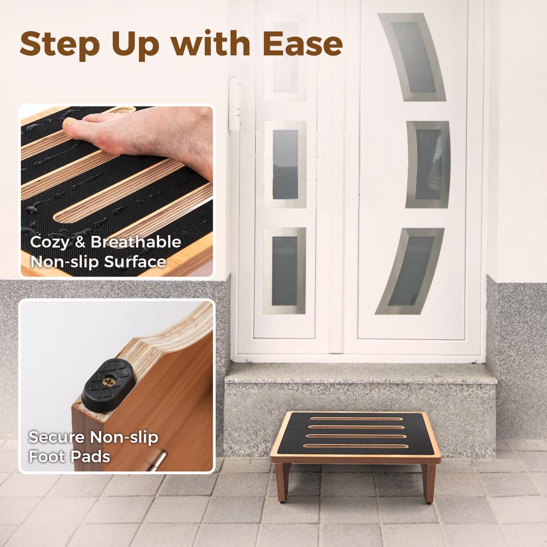 The open “slats” on the top of our stepping stool aren’t just for a designer look. They also help water or moisture drain if you’re using it outdoors for improved stepping stability.